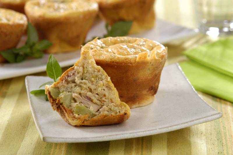 Aqueça o azeite em panela antiaderente, refogue a cebola e adicione os brócolis, as azeitonas e os tomates. Deixe por 5 minutos e coloque o atum, o manjericão e o sal. Misture delicadamente com a massa e coloque em forminhas de muffin untadas com azeite. Leve ao forno médio (180ºC), preaquecido, por cerca de 30 minutos. Retire e espere esfriar. Desenforme e sirva no lanche.